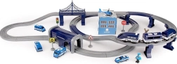 - Koleje, policejní stanice, most, tunel, dopravní značky, bateriový vlak se 2 vagony, 4 policejní vozidla, helikoptéra, figurka policisty, návod