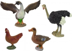 Sada zahrnuje pštrosa, slepici, kachnu a husu s věrnými detaily, které děti okamžitě zaujmou a naučí je rozpoznávat druhy zvířat.