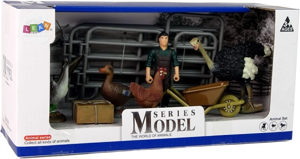 Tato sada figurek z farmy přináší dětem svět hospodářství přímo do pokojíčku. Najdete v ní různá ptačí zvířata (strús, slepice, kachna, husa), rolníka s kolečkem a ohrádku s vrátky. Věrné detaily podněcují fantazii a přirozeně rozvíjejí slovní zásobu i znalosti o zvířatech.