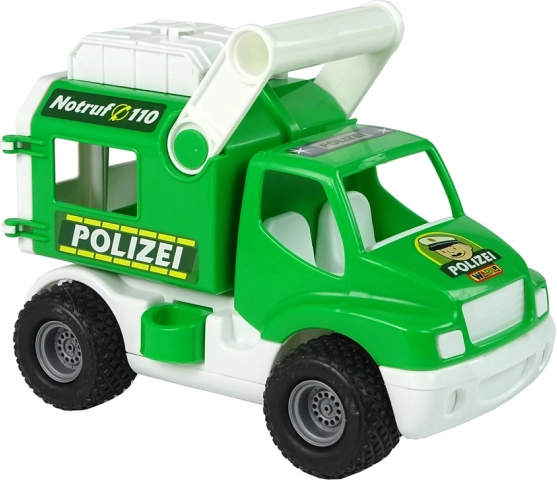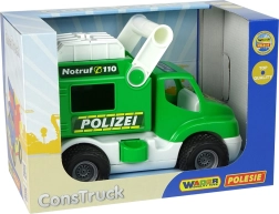 Zelené policejní auto ConsTruck od značky Polesie je odolná hračka pro děti od 1 roku. Nabízí gumová kola s běhounem pro lepší přilnavost, otevírací zadní dveře a horní schránku pro ukrytí pokladů i figurek. Postranní pojistka návěsu a vyklápěcí korba zaručí zábavu na dlouhé hodiny a podporují rozvoj jemné motoriky a logického myšlení. Vyrobeno z bezpečných, atestovaných materiálů, s certifikátem CE.