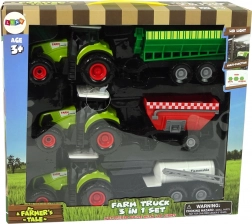 Objevte zábavnou farmu doma se sadou tří traktorů s různými přívěsy. Hračky mají pohyblivé díly, realistické zvuky (klakson, start motoru, couvání) a podporují kreativní a poučnou hru. Ideální dárek pro malé farmáře od 3 let.