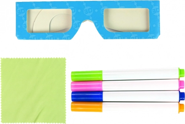 - podsvícená tabule, 4× neonový fix (modrý, zelený, růžový, oranžový), čisticí hadřík, 3 oboustranné šablony, 3D brýle, přísavky k zavěšení
