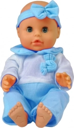 Překrásná modrá panenka ideální pro děti, které rády pečují o své hračky. V balení najdete lahvičku a nočník, se kterými panenka pije a čurá jako skutečné miminko.