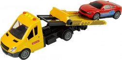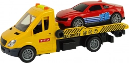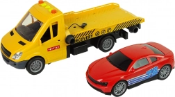 Díky frikčnímu pohonu stačí vůz postrčit a rozjede se vpřed. V balení najdete i červené sportovní autíčko s modrými detaily, ideální pro odtah do dětského servisu. Hračka je vyrobena s důrazem na odolnost a bezpečnost, splňuje CE a normu EN 71, a je skvělým dárkem díky balení s průhledným okénkem.