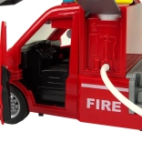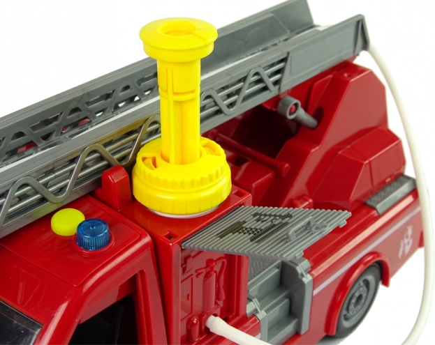 Hasičské auto je vybaveno systémem, který umožňuje stříkat vodu z hadice, a tak přináší dětem realistickou hru.