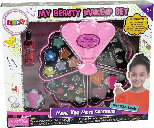Tato kosmetická sada ve tvaru mušle je ideální pro malé začínající vizážistky. Obsahuje šest očních stínů, tři tvářenky, osm lesků na rty, lak na nehty a štětečky na aplikaci. Každá vrstva skrývá unikátní kosmetické možnosti, které umožní dívkám vytvořit si vlastní styl. Díky její velikosti je snadné sadu mít stále po ruce.