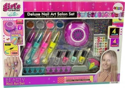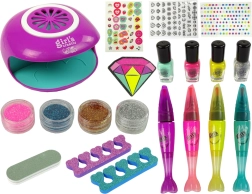Tento bohatý kreativní set promění domácí hraní v malé nehtové studio. Děti si vyzkouší péči o nehty, učení přesnosti i vytváření vlastního stylu. Po úpravě tvaru nehtů stačí nanést oblíbený odstín, vložit ručku do mini lampy na nehty a zdobit pomocí fixů, brokátů a nálepek. Výsledek je zářivý, originální a hlavně zábavný.