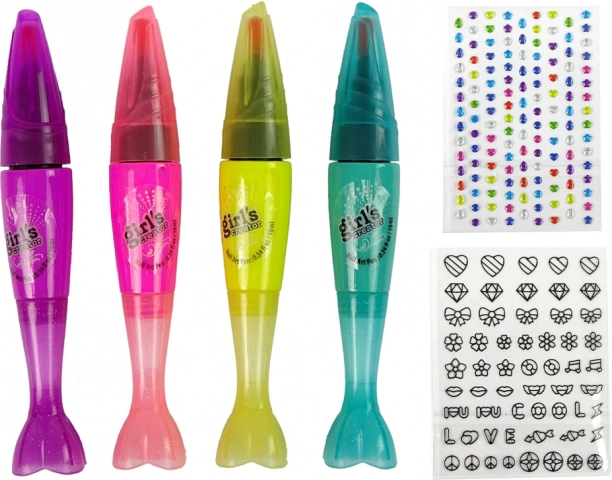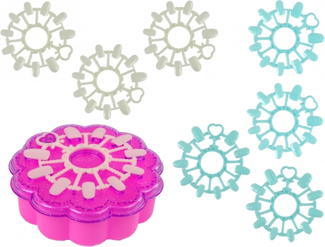Obsahuje barevné nálepky, třpytivé separátory a vzorníky pro vytváření kreativních vzorů na nehtech.