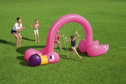 Tato velká nafukovací branka se sprškami v designu plameňáka připojitelná na zahradní hadici vytvoří parádní vodní tunel, pod kterým děti probíhají a nechávají se kropit jemnými tryskami. Díky výšce 1,93 m se do hry mohou zapojit i dospělí.