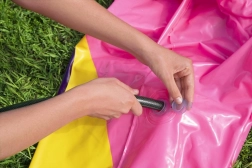 Fontánu rychle zprovozníte – připojte zahradní hadici, nafoukněte a zábava může začít.