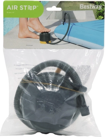 Praktická nožní pumpa BESTWAY o výšce 13 cm pro rychlé nafukování matrací, člunů a hraček. Nabízí rychlé nafukování, 3 výměnné nástavce, flexibilní hadici a kompaktní, lehké provedení. Odolný materiál a objem 500 cm³ (0,5 l) zajistí pohodlné použití doma i na cestách.