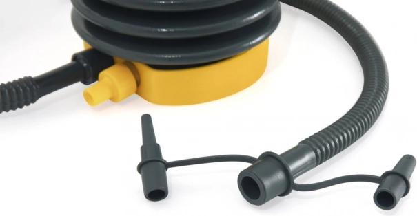 Součástí je flexibilní hadice a sada 3 výměnných nástavců, takže bez problémů nafouknete nafukovací matrace, bazénové hračky, míče i menší čluny. Objem 500 cm³ (0,5 l) na zdvih pomáhá rychle a efektivně dodat potřebný vzduch.