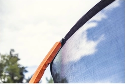 Vysoká ochranná síť brání pádu mimo trampolínu a zajišťuje klidnou mysl rodičů i radostné skákání dětí.