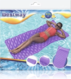 Plovoucí lehátko Bestway vyniká komfortním tvarem s vestavěným polštářem, který podpírá hlavu a šíji. Vlnitý povrch zvyšuje pohodlí při ležení, zatímco pevné PVC zajišťuje dlouhou životnost a odolnost vůči drobnému poškození.