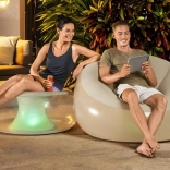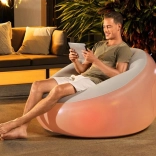Stylové nafukovací křeslo se zabudovaným LED podsvícením promění každý interiér i terasu v útulnou zónu. Je lehké, skladné a díky pevné konstrukci a pohodlnému flokovanému povrchu nabízí skvělé pohodlí. Rychlý ventil usnadní nafukování a vypouštění, LED osvětlení se 7 barvami vytvoří atmosférické světlo pro relax i večerní posezení.