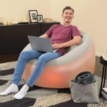 Odolná konstrukce a měkký, flokovaný povrch zajišťují pohodlí při sezení i lenošení. Rychlý vyfukovací ventil šetří čas při balení. Maximální nosnost 100 kg pokrývá většinu každodenních potřeb. Osvětlení je napájeno bateriemi (nejsou součástí balení).