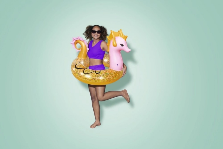 Díky třpytivým detailům dodává plaveckému kolu další úroveň zábavy a vizuálního potěšení.
