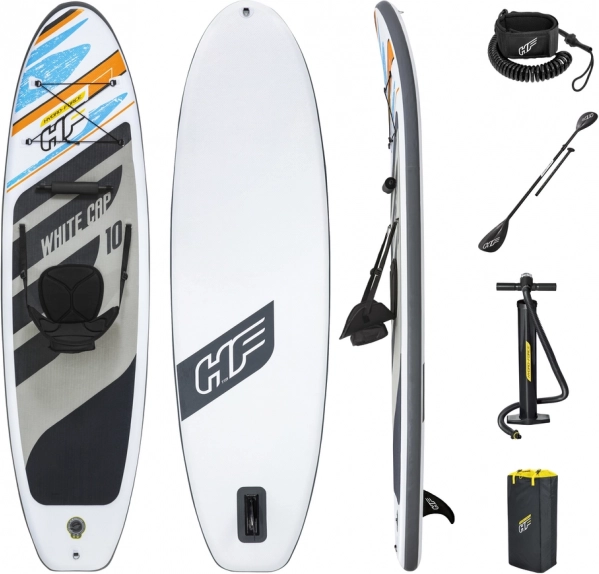 Hydro-Force White Cap je nadmíru všestranná nafukovací deska na paddleboarding, která snadno získá srdce všech vodních nadšenců díky svému odolnému materiálu a stylovému designu. Její součástí je pohodlné sedadlo pro možnost přeměny na kajak.