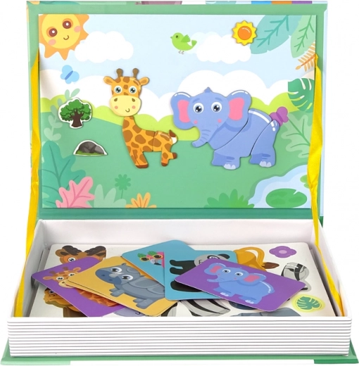 Objevte kreativní zábavu, která rozvíjí dětskou fantazii a logiku: magnetická knížka se zvířátky obsahuje cca 47 magnetů a 6 karet předloh pro skládání obrázků, jako je krokodýl či opička. Praktické knižní balení s magnetickou deskou uvnitř je ideální na cesty a podporuje koncentraci, samostatnost a kreativní myšlení.