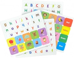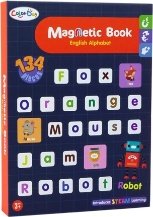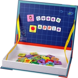 Magnetická skládačka obsahuje písmena a obrázky zobrazující ovoce, zvířata, barvy a další běžné předměty. Každá ilustrace je opatřena anglickým popiskem, což usnadňuje zapamatování nových slov a přináší skvělou přípravu na školní výuku. Děti mohou skládat slova z magnetických písmen a spojovat je s odpovídajícími obrázky, což činí učení intuitivním a zábavným.