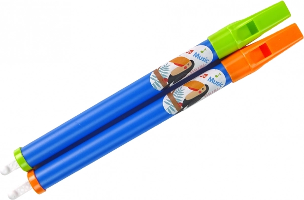 V balení jsou dvě flétny, ozdobené krásnými barvami a přírodními motivy. Dětská hračka, která nabízí zábavu a příležitost ke kreativitě při hře s hudebními tóny.