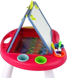 Dětský stoleček s tabulemi nabízí dvě kreslící plochy - bílou pro omyvatelné fixy a černou pro kreslení křídou. Pod stolkem se nachází úložný prostor pro uskladnění příslušenství, kde kulaté otvory jsou ideální pro fixy a křídy. Díky zahrnutým herním deskám můžete hrát oblíbené hry jako Člověče, nezlob se a hadi, čímž podporujete zdravou soutěživost a učíte se pravidla hry společně s vrstevníky.