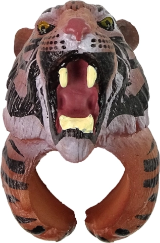 Objevte okouzlující dětský prsten s motivem tygra bengálského, který promění běžnou hru v malé divadelní představení. Prsten je navržen pro malé dětské ruce, je lehký a příjemný na nošení a jeho výrazné barvy s pruhy upoutají pozornost.