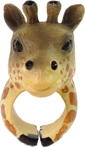 Roztomilý dětský prsten s hlavou žirafy potěší malé milovníky zvířat a podpoří jejich fantazii. Je lehký, odolný a malovaný netoxickými barvami, takže je bezpečný pro děti. Skvělý jako zábavný doplněk i jako rekvizita pro hraní divadla a učení se zvířat hravou formou.