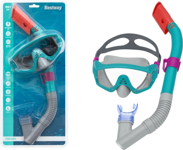 Sada na šnorchlování BESTWAY pro mládež a dospělé od 14 let kombinuje pohodlnou masku a šnorchl pro bezpečné objevování pod hladinou. Měkké silikonové těsnění a nastavitelný pásek zajišťují dokonalé přilnutí bez protékání, odolný zorník s UV filtrem chrání oči a šnorchl s měkkým náustkem a ochranou proti vniknutí vody usnadňuje dýchání. Lehká, barevně atraktivní sada je ideální na dovolenou i do bazénu.