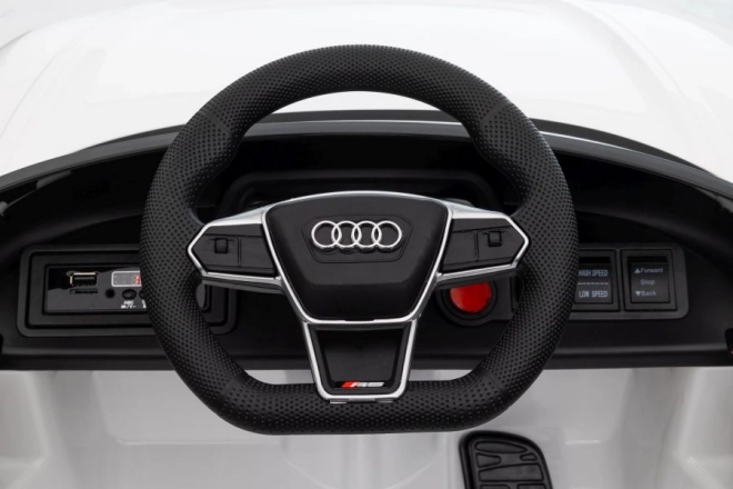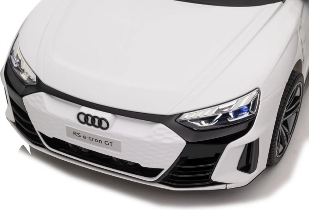 Stylové dětské elektrické auto AUDI RS e-tron GT v elegantní bílé barvě přináší realistický zážitek z jízdy pro malé řidiče. Nabízí světelné efekty, detailní zpracování a pohodlné ovládání, ideální pro jízdu po rovných površích doma i venku.
