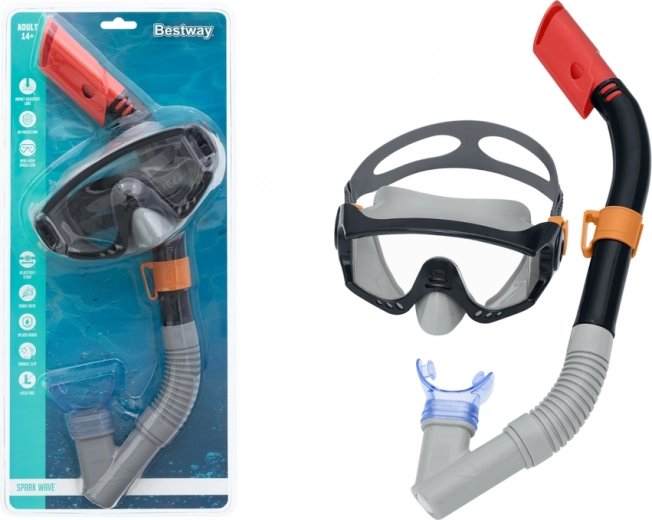Objevte podmořský svět s lehkou a odolnou sadou BESTWAY. Maska nabízí čiré a odolné čočky s UV ochranou a měkký lícnicový lem pro skvělé přilnutí bez zatékání. Šnorchl má ochranu proti vniknutí vody a flexibilní část pro pohodlné přizpůsobení.