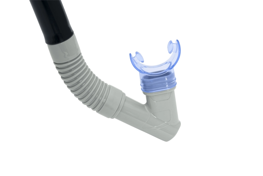 Šnorchl s horní ochranou proti stříkající vodě a flexibilní částí pro přirozenou polohu a klidné dýchání.
