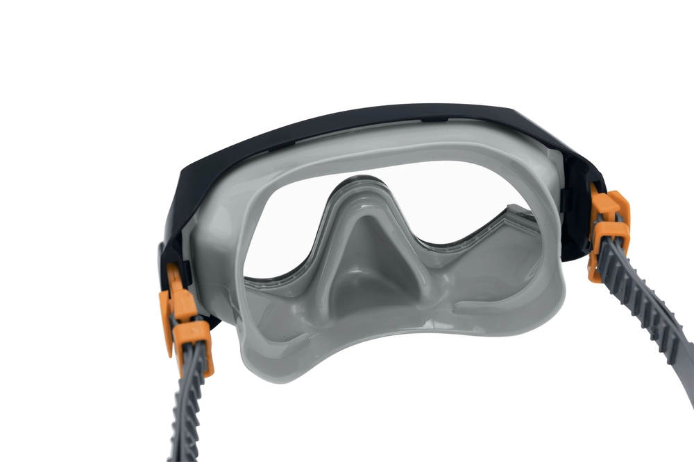 Nastavitelný pásek masky a klip šnorchlu umožní perfektní přizpůsobení různým tvarům obličeje.