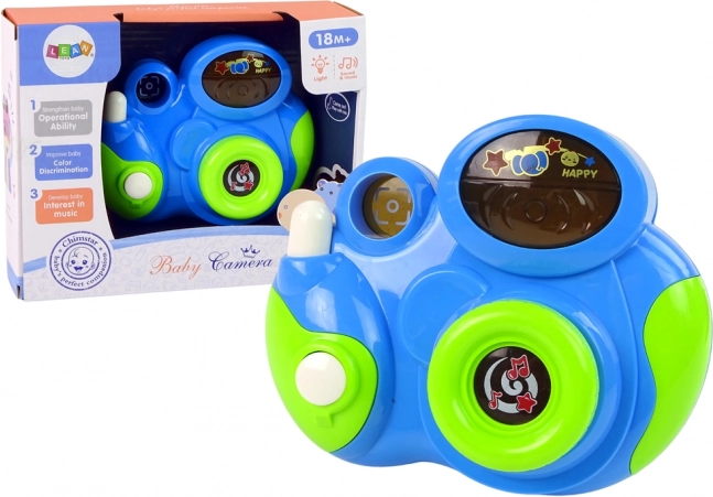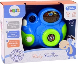 Tento zábavný a bezpečný dětský fotoaparát pomáhá nejmenším objevovat svět napodobováním dospělých. Při stisku tlačítek spouští 3 melodie, barevná světla jako blesk a realistický zvuk "cvaknutí". Otočný objektiv navíc při otáčení příjemně chrastí, což podněcuje zvědavost a rozvíjí jemnou motoriku.