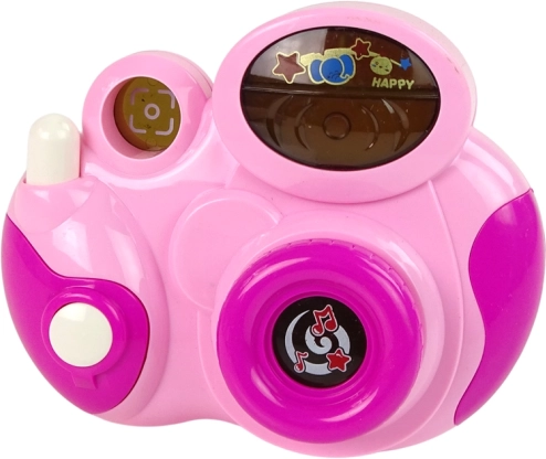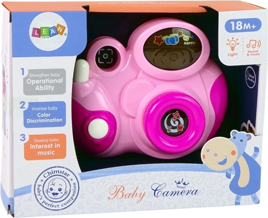 Růžový interaktivní dětský fotoaparát potěší malé objevitele od 18 měsíců. Nabízí světelné efekty, zvuk závěrky a 3 veselé melodie, které rozvíjejí koordinaci ruka–oko i smysly.