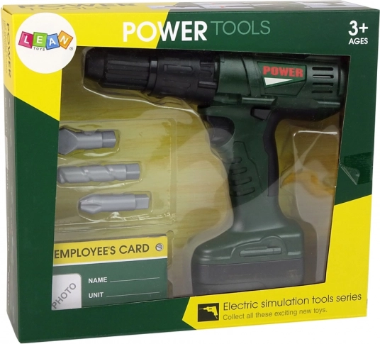 Dětská akumulátorová vrtačka se zeleným designem a výměnnými vrtáky