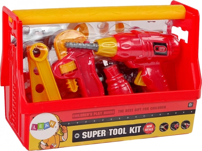 Kompletní dětská sada pro malé kutily v praktickém kufříku. Obsahuje vrtačku pro malé ruce, šroubovák, kladivo, kleště, francouzský klíč, imadlo a spojovací díly. Lehký plastový materiál, výrazná červená barva a možnost vše uložit do přenosné skrzynky podporují rozvoj motoriky a kreativní hru. Vhodné od 3 let, s certifikátem CE.