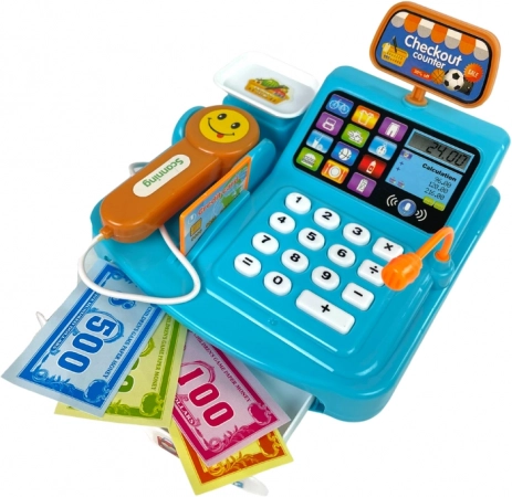 Zábavná dětská pokladna v modrém provedení s váhou, skenerem a čtečkou karet promění každý den v realistickou hru na obchod. Podporuje učení počítání, rozpoznávání peněz a rozvoj komunikace. Skener vydává realistické zvuky jako v supermarketu a sada obsahuje i mince a krabičku sušenek pro ještě autentičtější zážitek.