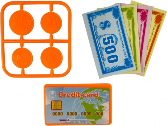 Barevné bankovky, mince a platební karta podporují finanční gramotnost a zábavnou formou vysvětlují hodnotu peněz.
