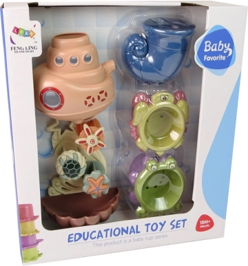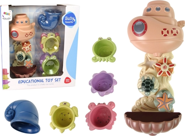 Velká loď ve tvaru mořského světa vytváří úžasný vodopád. Pod proudem se třepou barevná kolečka se vzory mořských živočichů. Hračka se snadno připevní k vaně pomocí přísavek na zadní straně.