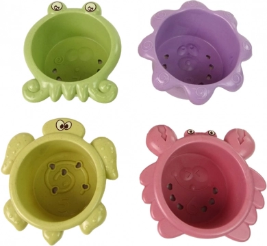 Součástí sady jsou plastové hrníčky ve tvaru mořských živočichů s otvory, které umožňují pozorovat různé proudy vody.