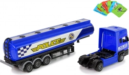 Modrý policejní cisternový kamion přináší zábavu každému malému nadšenci do speciálních sil. Spojuje vlastnosti cisterny a kamionu do jednoho funkčního celku. Kamion, díky své jednoduché funkčnosti, zaujme a povzbudí k samostatné hře. Díky kompaktním rozměrům si ho děti mohou vzít kamkoliv s sebou, například do školky nebo na rodinný výlet.