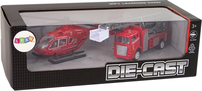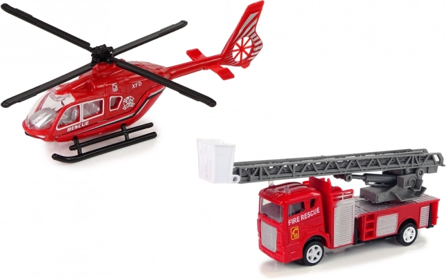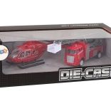 Sada obsahuje dvě hasičská auta a vrtulník spolu s šesti kartičkami různých vozidel. Rozměry hraček umožňují snadnou manipulaci i těm nejmenším rukám.
