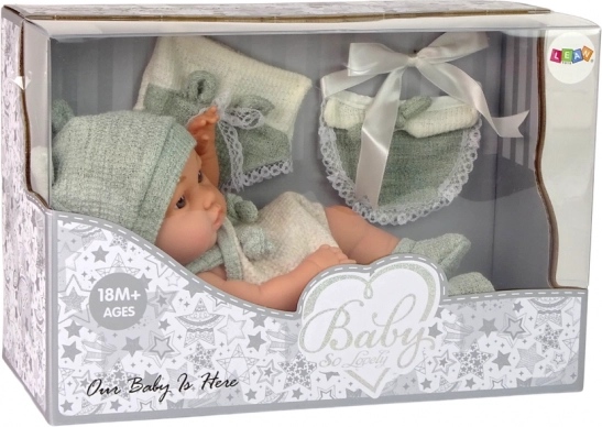 Loutka sladký miminko je ideální hračkou pro malé pečovatelky a pečovatele. Umožňuje dětem rozvíjet pocit odpovědnosti a empatie při hře plné zábavy. Oblečena do sladkého svetříku s ladící čepičkou v jasně zelené barvě s krajkovými detaily. Má pohyblivé končetiny a hlavu, což umožňuje miminku být v sedící nebo ležící pozici. Oblečky jsou snadno vyměnitelné, což přidává na variabilitě a kreativitě při hře.