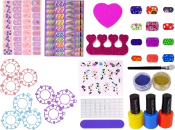 Tato sada obsahuje několik barevných laků na nehty a různé barevné samolepky. Klasické, vzorované a třpytivé umožní krásně namalovat nehty a rychle a jednoduše je odstranit běžným odlakovačem.