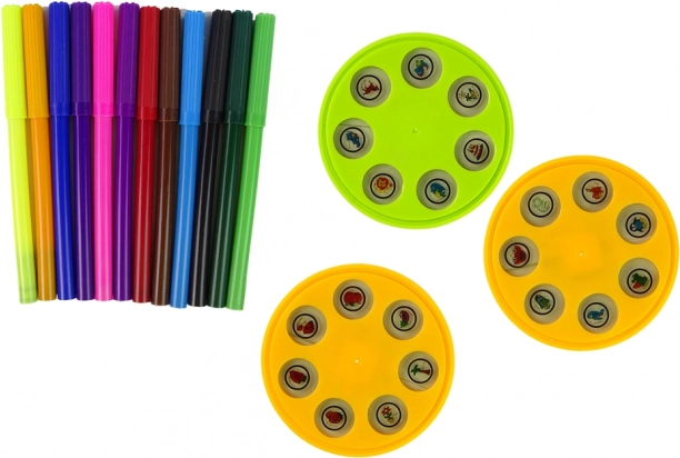 Projektor je dodáván s barevnou sadou fixů a třemi slidů s razítky pro větší rozmanitost a kreativitu.