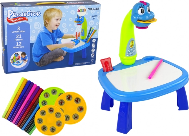 Tento speciální projektor ve tvaru hlavy dinosaura promítá na tabuli obrázky, které děti mohou obkreslit přiloženými fixy. Hračka je velmi jednoduchá na použití a nabízí zábavnou aktivitu pro malé umělce.