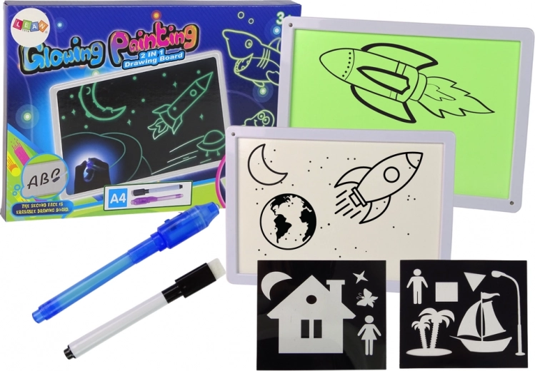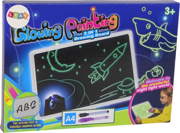 Velký kreslicí tablet formátu A4. Tablet je určen pro výuku psaní, malování, poznámek nebo výpočtů. Tablet má panel pro kreslení magickými fixy. Podsvícení fixů LED ještě více zvýší atraktivitu provedených kreseb a zajistí, že budou skvěle vypadat i v potemnělé místnosti. Zařízení je velmi lehké a tenké, takže se vejde prakticky kamkoli.