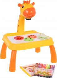 Zábavný kreslicí stolek s projektorem ve tvaru žirafy promítá až 24 motivů a nabízí suchosmazací plochu, 12 barevných fixů i snadné ovládání. Díky nastavitelnému projektoru se světlem a 12 melodiím si děti užijí kreativní hru, která rozvíjí fantazii a jemnou motoriku.
