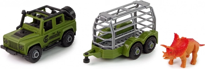 Přívěs lze kdykoli odpojit a hrát si jen s autem. Set obsahuje také figurku dinosaura, která doplní příběhy ve stylu jurajského parku. Vše je vyrobeno z netoxických a bezpečných materiálů s certifikací CE.